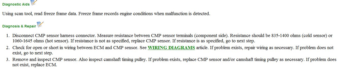 I am including the test instructions for both the BATT ECM, or also called an ECU, and the camshaft Positon Sensor, CMP.