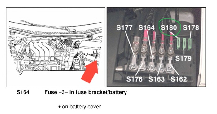 As you can see from the above diagram, fuse S180 (far left on battery) supplies power to the fans and the Control Module.