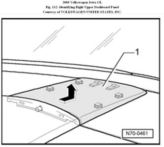 à † Remove the right upper dashboard panel - 1 - in the direction of - arrow A - and - arrow B -.