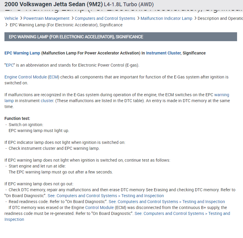 You could have EPC fault code if there is an issue with the throttle body.