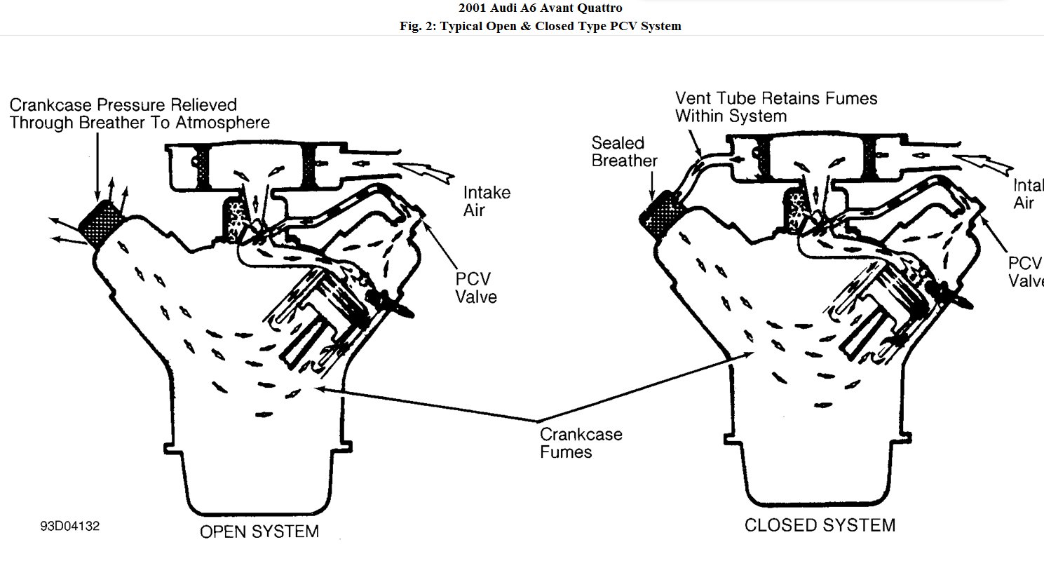 A closed sytem is the same on the PCV side. The other valve cover will have a Closed Crankcase Ventilation valve, CCV, as shown in diagram which goes from the CCV on the valve cover and connects it to the throttle body.