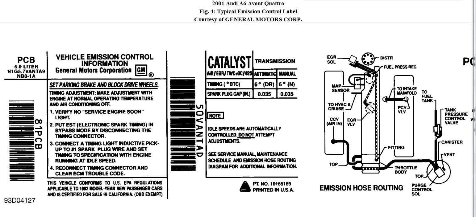 So, just tell the mechanich you, "were confused about the sytem after looking at the underhood sticker and wnated to make sure it was in compliance for emissions issues".