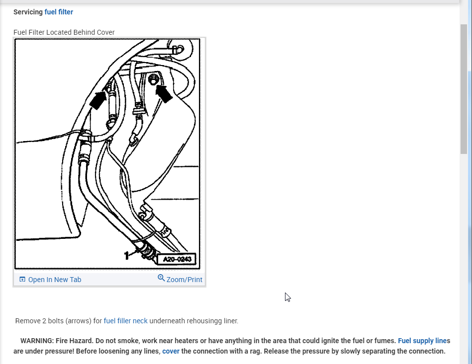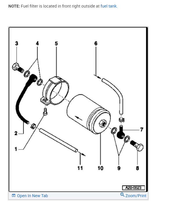 I need to know where the fuel filter is located on my vehicle listed above A6 Quattro.