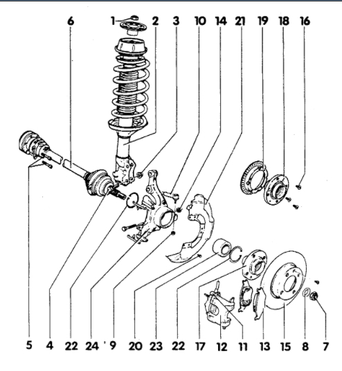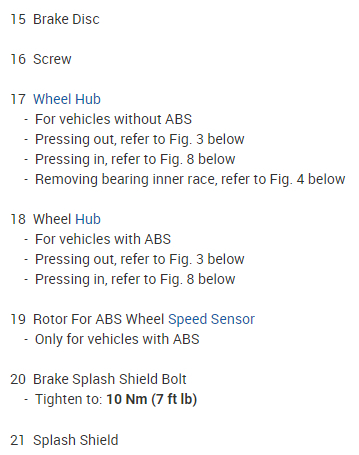 Next, back up, then select "Brake and Wheel Hub" to find the wheel bearings. This is the pressed-in design that isn't used much anymore. Normally a set of special tools is needed to replace this type of bearing. In most cases the old one has to be destroyed to remove it, so it can't be reused later or on the other side.