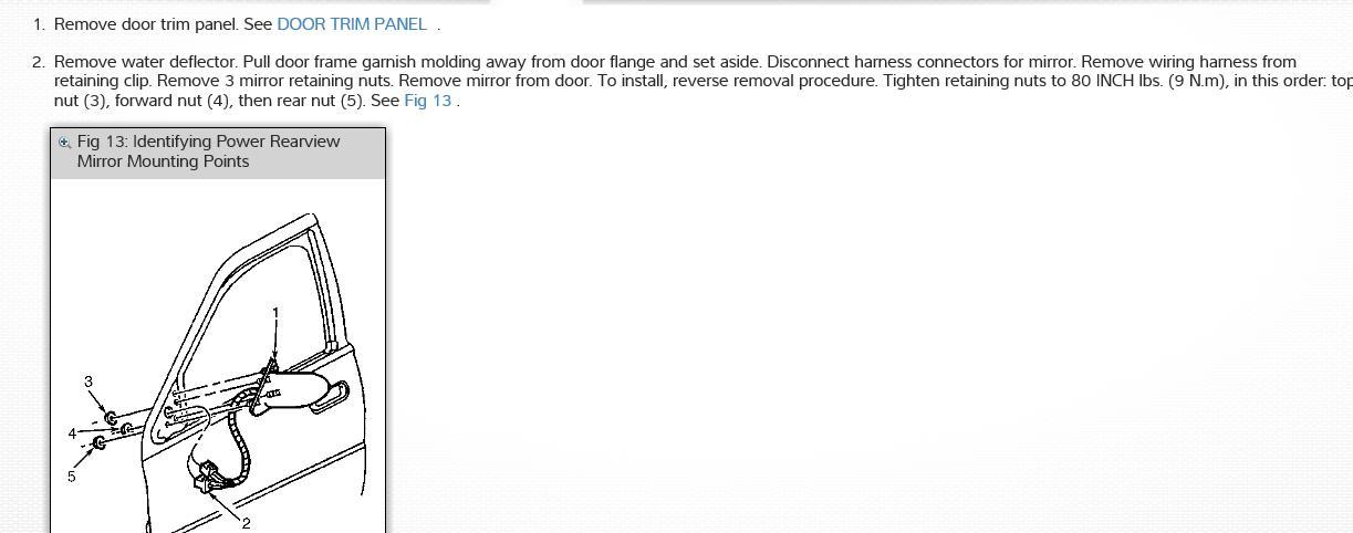 Remove door trim and undo harness and undo 3 retaining bolts for mirror, see pic.