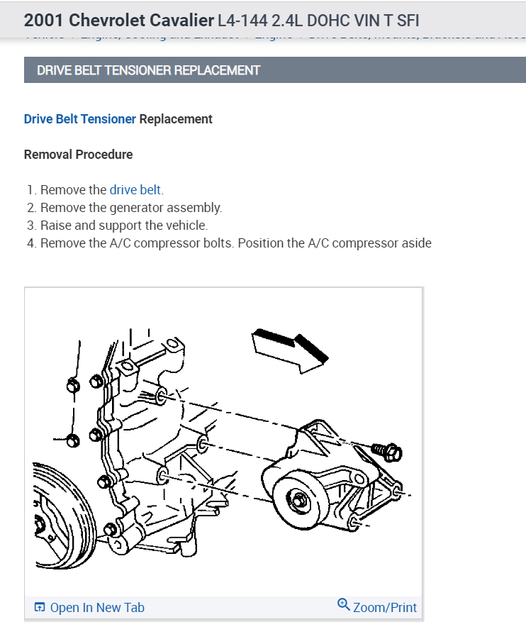 How to replace 2001 Chevy Cavalier 2.4 liter belt tensioner pulley?