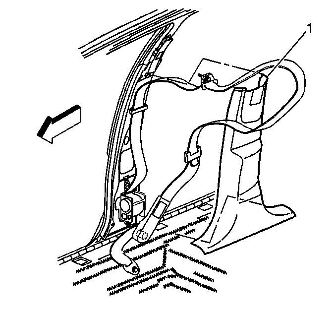 Remove the trim panel from the lower center pillar. Refer to Center Pillar Lower Trim Panel Replacement in Interior Trim.