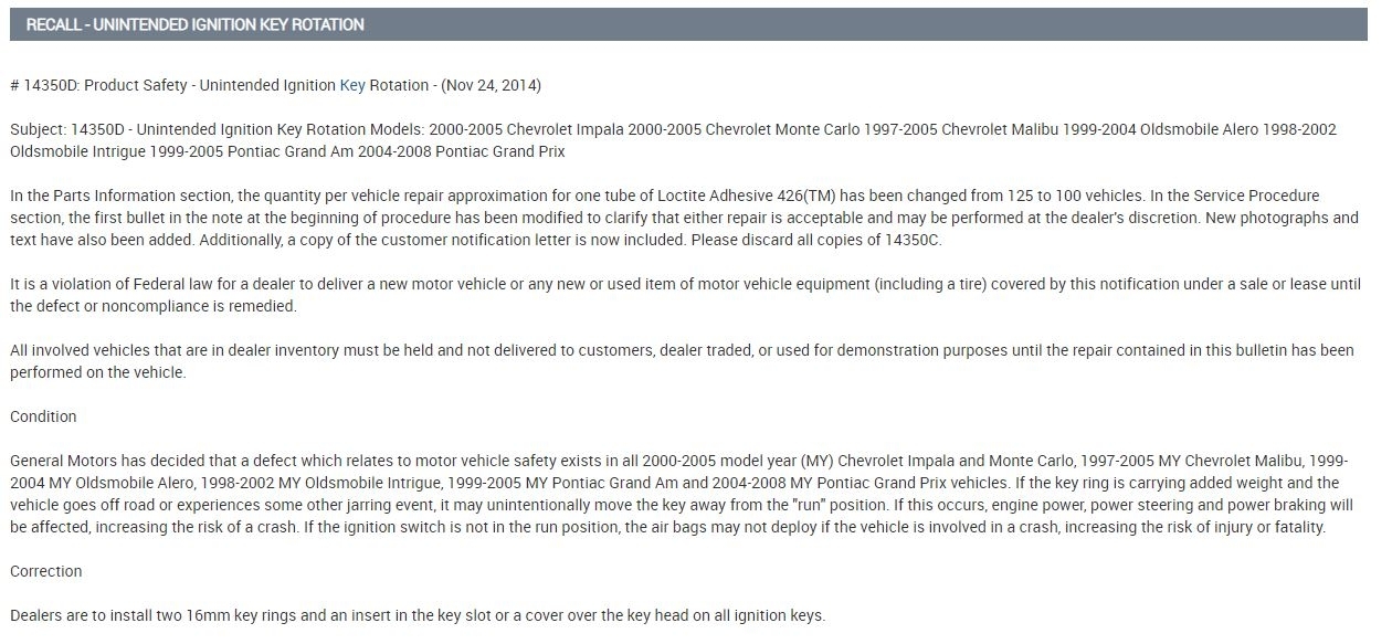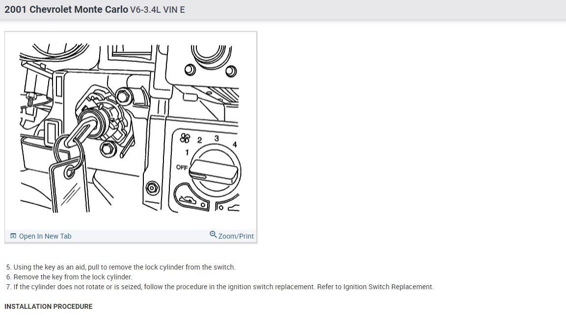 Also, some 2001 Monte Carlos had a recall pertaining to the key switch. You can call your local dealer with your VIN number, or check for open recalls at www.NHTSA.com to see if this applies to your car.