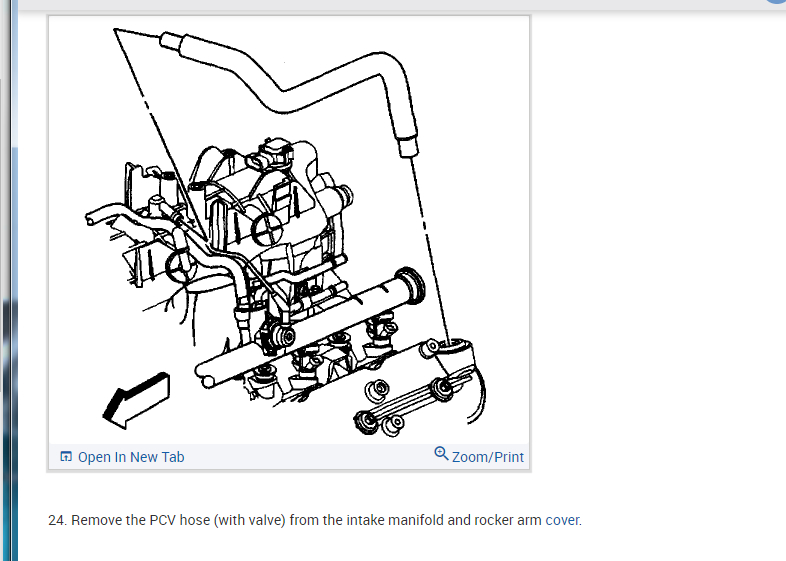 24. Remove the PCV hose (with valve) from the intake manifold and rocker arm cover.
