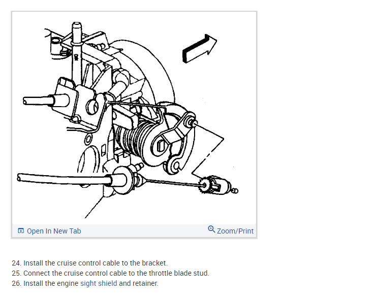 3. Disconnect the cruise control cable from the throttle blade stud.