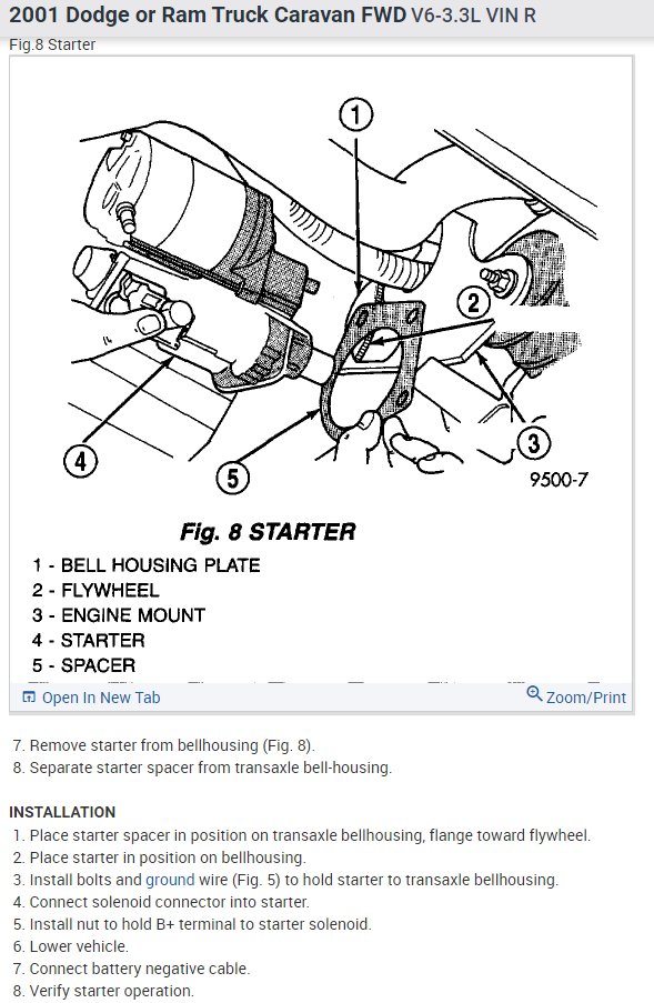 1997 Dodge Carivan 4 Cylinder Starter Removal And Replacement Info? Where Is It Located And How Difficult Is It To Change? Thanks