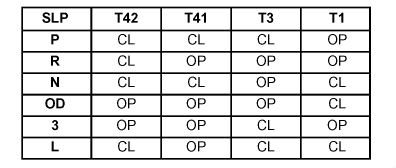 The Transmission Range Sensor (TRS) (Fig. 304) communicates Shift Lever Position (SLP) to the TCM as a combination of open and closed switches. Each shift lever position has an assigned combination of switch states (open/closed) that the TCM receives from four sense circuits. The TCM interprets this information and determines the appropriate transaxle gear position and shift schedule.