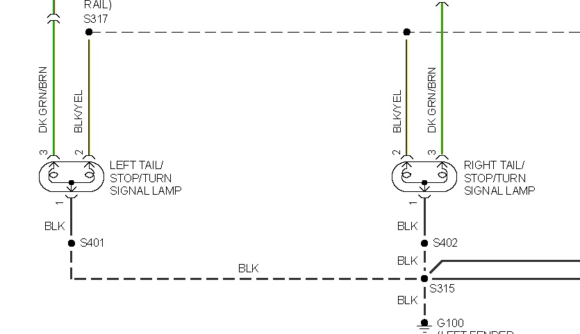 When problem is ongoing, check for voltage at the turn signals. At the lower rear, the dark green wire with brown tracer is voltage for turn/brake, they use the same bulb filament, just not at the same time.