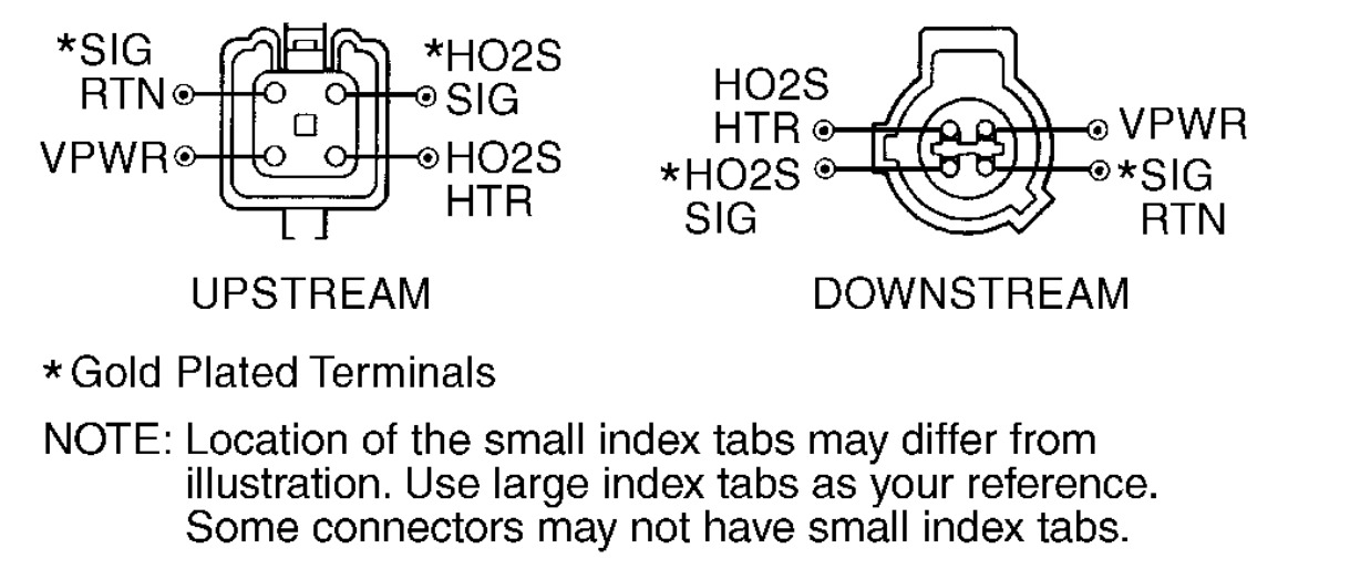 Leave ignition switch turned to OFF position and HO2S disconnected. Using a DVOM, measure resistance of suspect HO2S HOTA circuit between PCM harness connector terminal and suspect HO2S harness connector terminal. See PCM HO2S, VPWR & GROUND TERMINAL IDENTIFICATION table. See Fig. 68 or Fig. 69. If resistance is 5 ohms or more, repair open circuit or excessive resistance in HOTA circuit. If resistance is less than 5 ohms, go to next step.