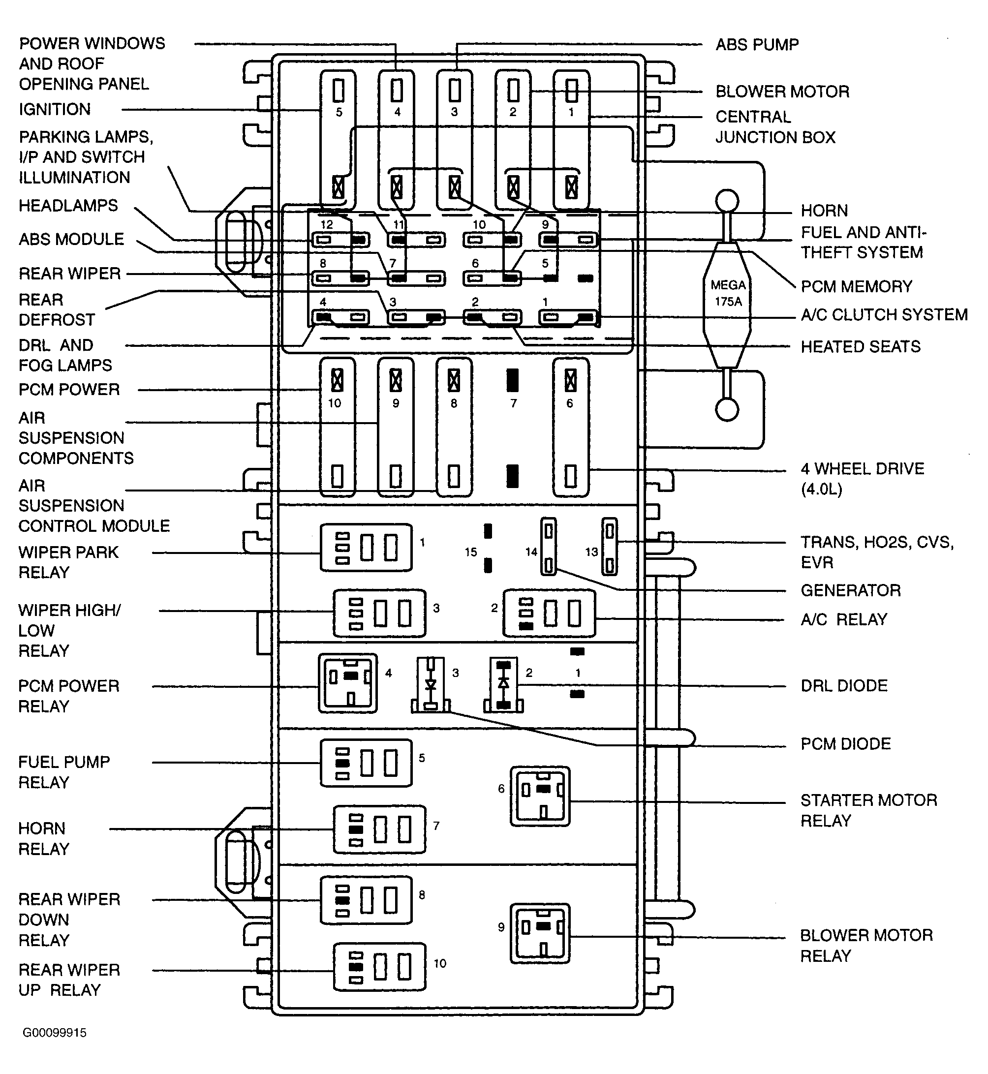 The images that I am attaching are the under-hood battery junction box. Check fuse #14 (generator). If it is blown, replace it and see what happens.