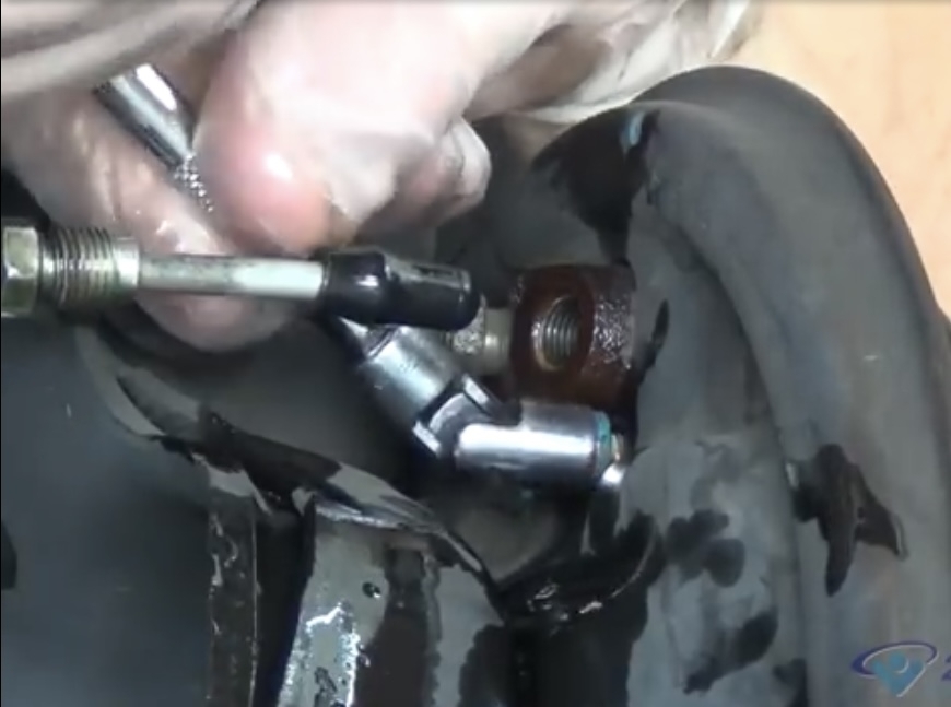I was wondering what tool to use and what bold size to remove the two screws on the back of the brake cylinder. It is a tight spot and I saw a tool you guys used so I am wondering what it is and size and how to do it with stripping the bolts.