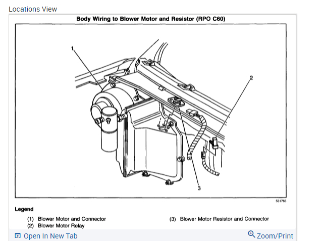 The blower motor is mounted on the passenger side firewall. You will have to access it from under the hood (see diagrams).