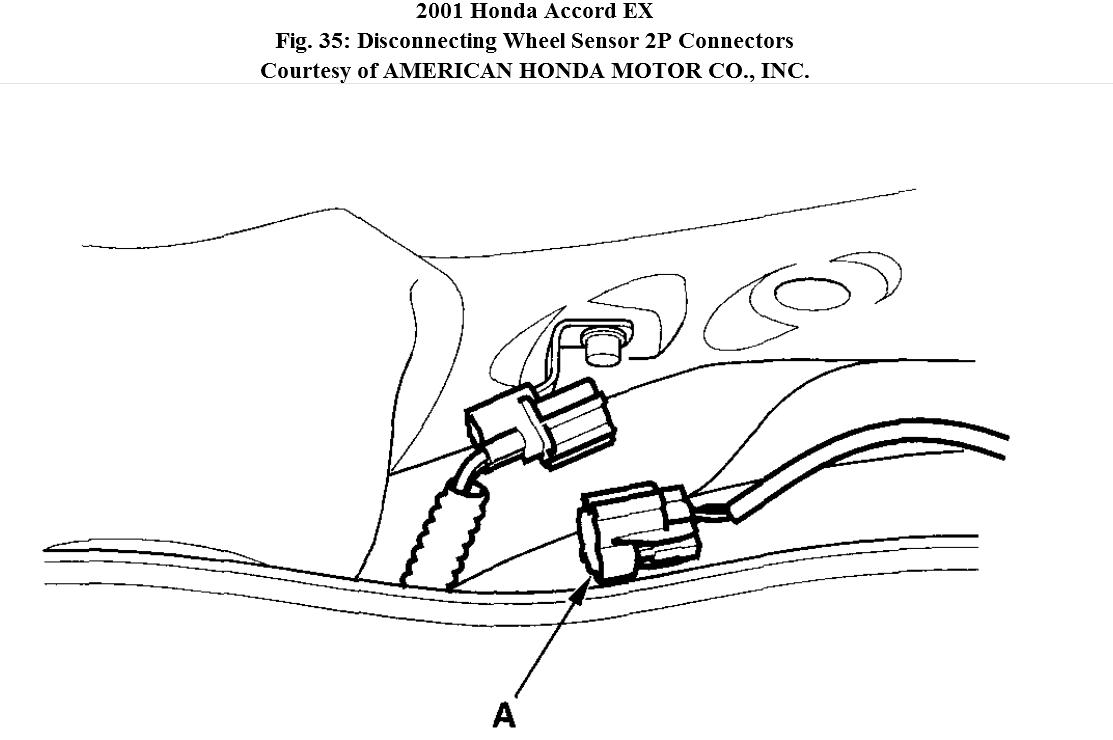 10. If the vehicle has ABS, disconnect the wheel sensor 2P connectors (A); if not, go to step 11.
