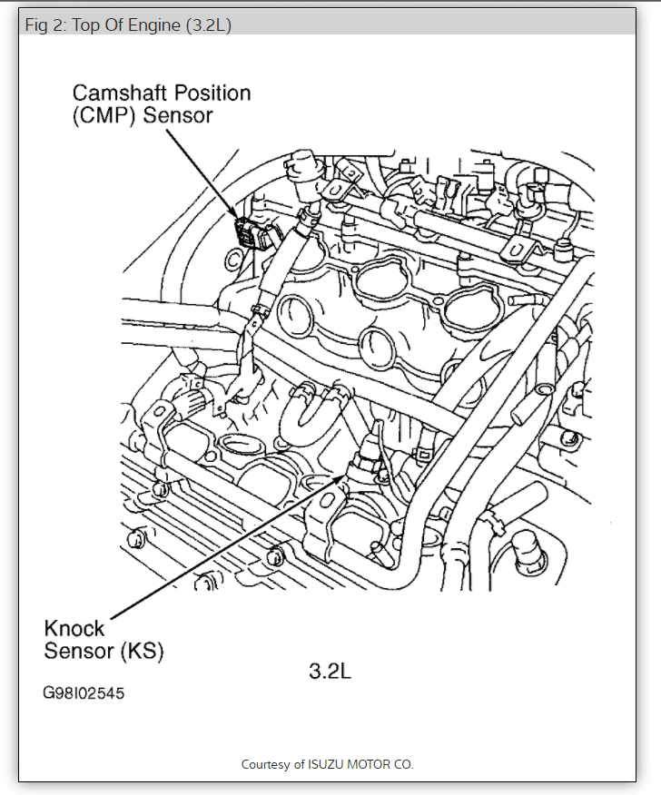 Where is the knock sensor located on the 3.2L 2001 Isuzu Rodeo? It is NOT under the intake like they usually are?
