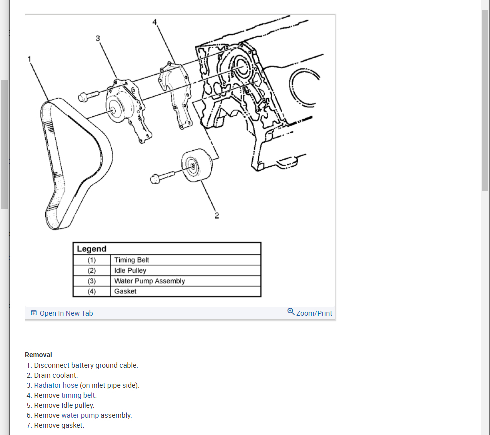 This job requires the removal of the timing belt which is a good idea to replace while doing the job. Here is a guide for doing that (picture at bottom):