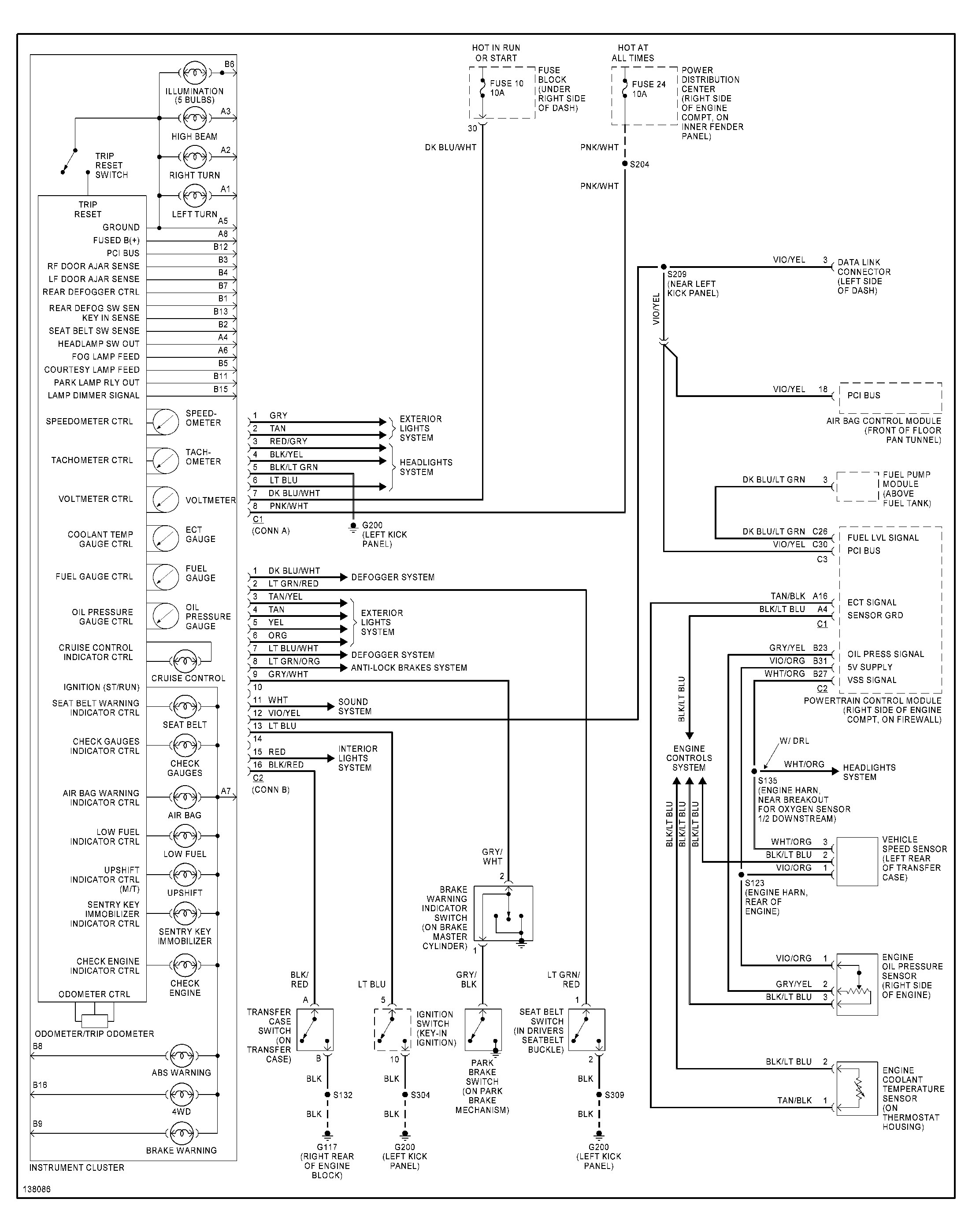 All I can find is One temp sensor---I cannot advise you on how to test it, it seems to go into computer crap, before it reaches the gauge