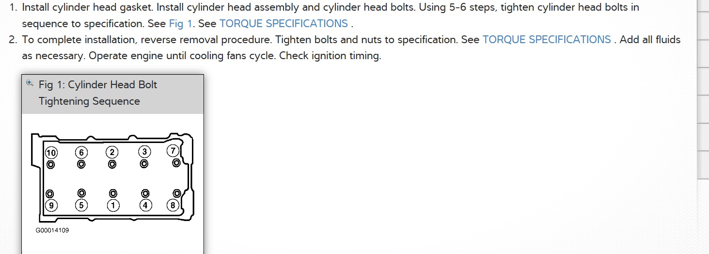 See pic head bolts should be cleaned of junk and block tapped with clean out tap note step 4 is to mark head bolts for reference. First number is ft lbs, second Nm. Must be torqued in sequence.