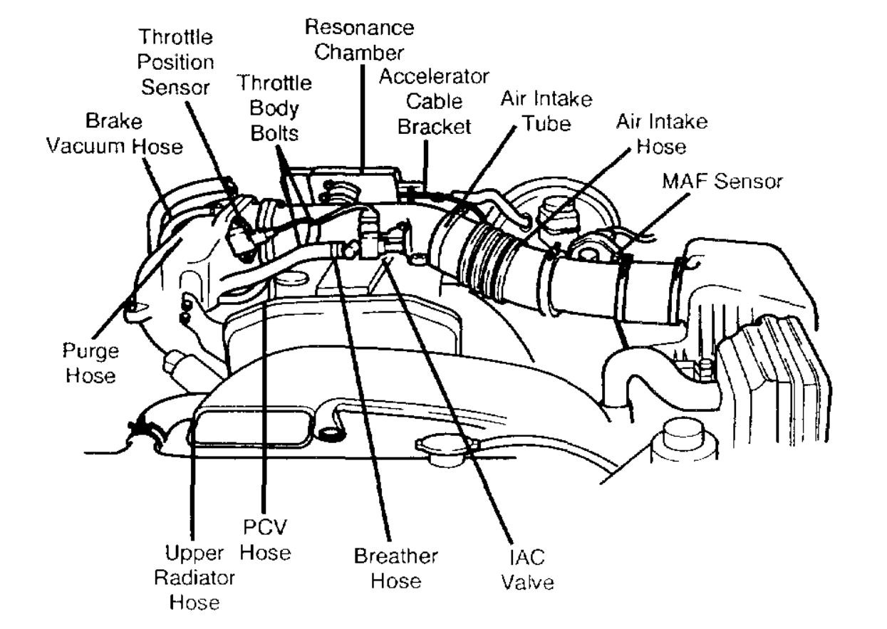 6. Remove the IAC and breather hoses, and the vacuum line from the air intake tube.