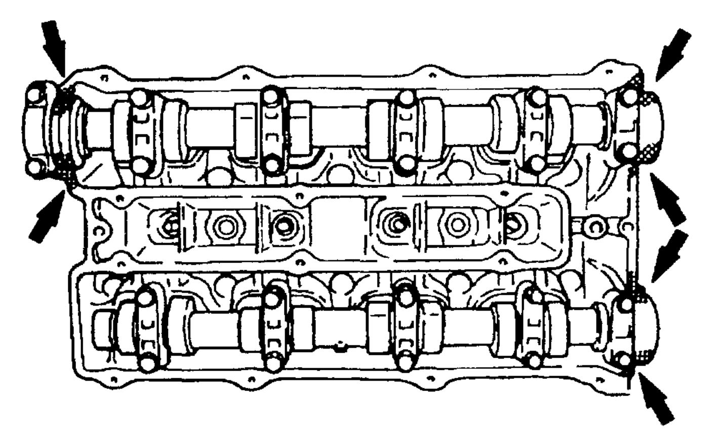 1. Place a small amount of sealer at the corners of the float camshaft caps and the distributor mounting cap.