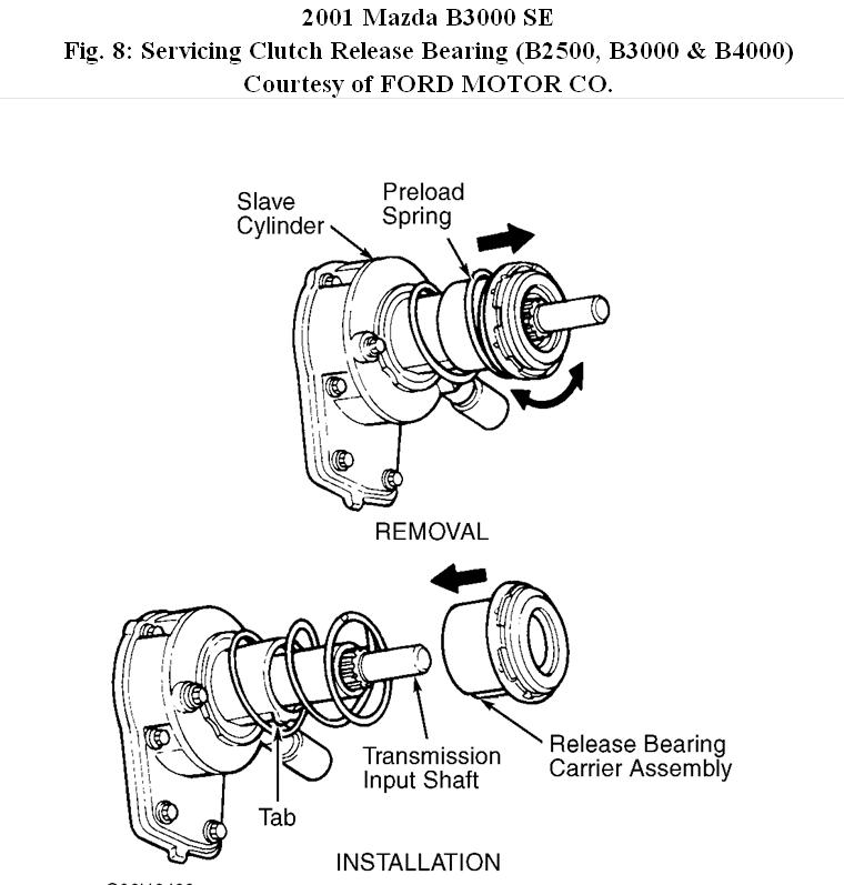 How do I remove the old release bearing from the slave cylinder on a 2001 Mazda B3000?
