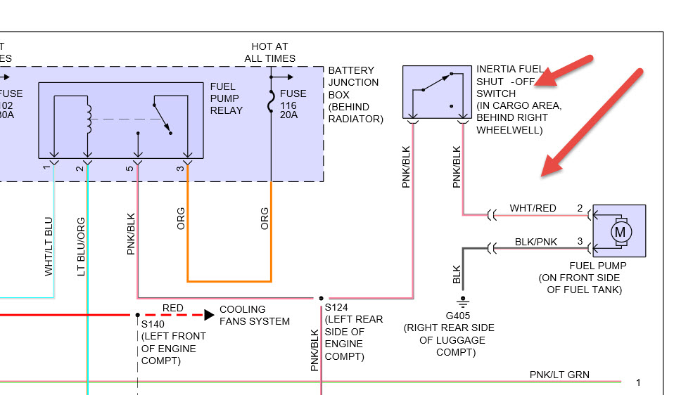 • Supplied twelve volts power to down-stream side of inertia switch – fuel pump runs.