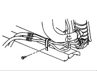 Remove the transaxle oil cooler pipe bracket bolt from the lower tie bar.