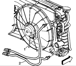 Disconnect the upper (1) and lower (2) transaxle oil cooler pipes from the radiator using the J 41623-A.