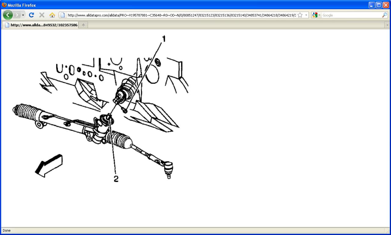 1. Position the power steering gear (1) on the vehicle.