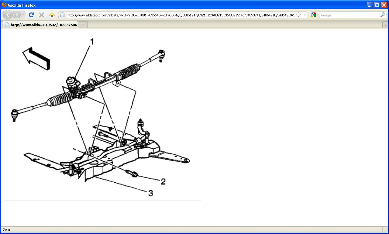 8. Remove the power steering gear bolts (2) from the frame (3).