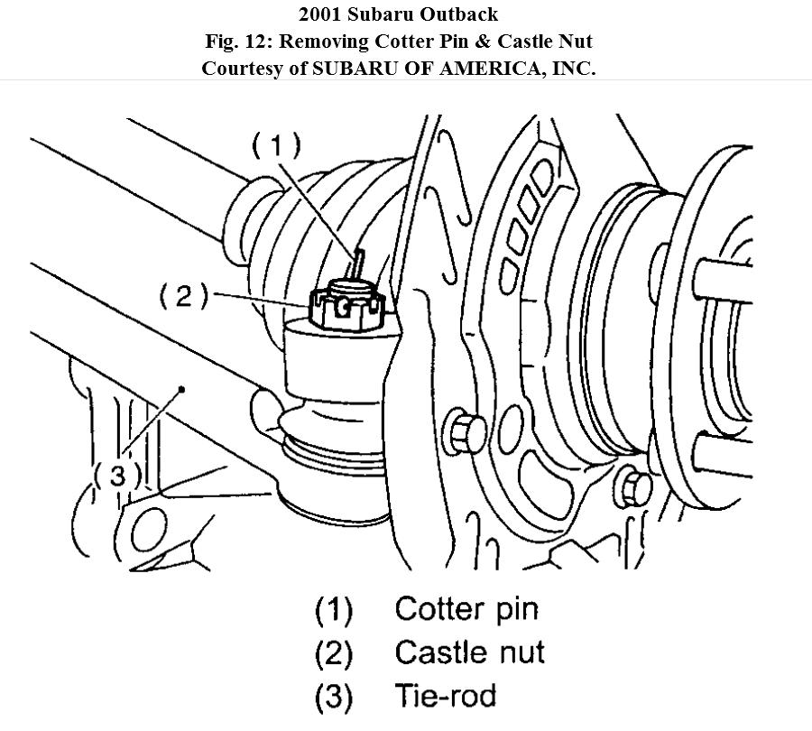 10. After tightening castle nut to specification, retighten it further within 60° until a slot in castle nut is aligned with the ball joint hole. See Fig. 12.