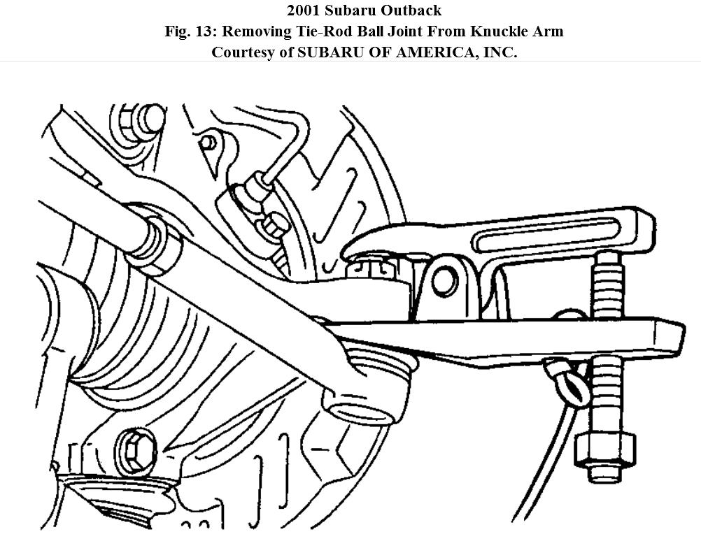 9. Using a puller, remove tie-rod ball joint from knuckle arm. See