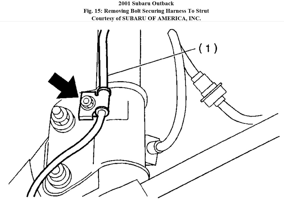 11. Remove bolt which secures sensor harness to strut. See Fig. 15.