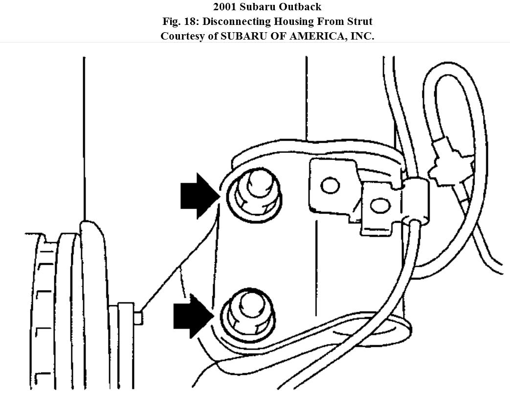 15. After scribing an alignment mark on camber adjusting bolt head, remove bolts which connect housing and strut, and disconnect housing from strut. See Fig. 18.
