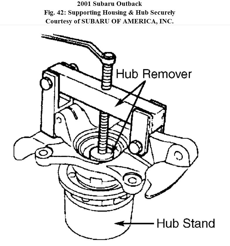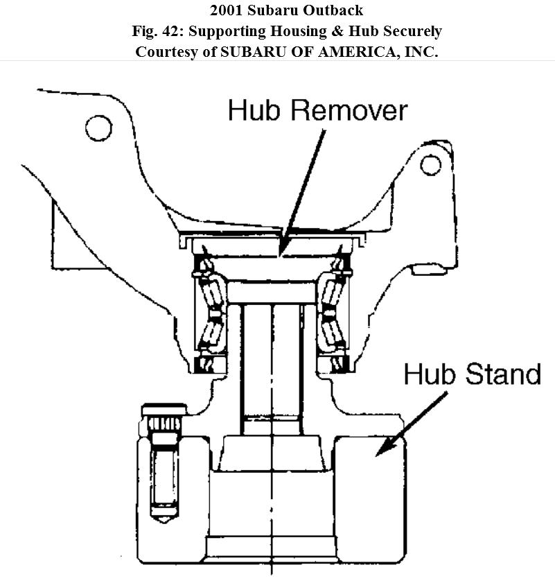2. Attach hub stand to housing drive hub out. See Fig. 42. If inner bearing race remains in the hub, remove it with appropriate tool.