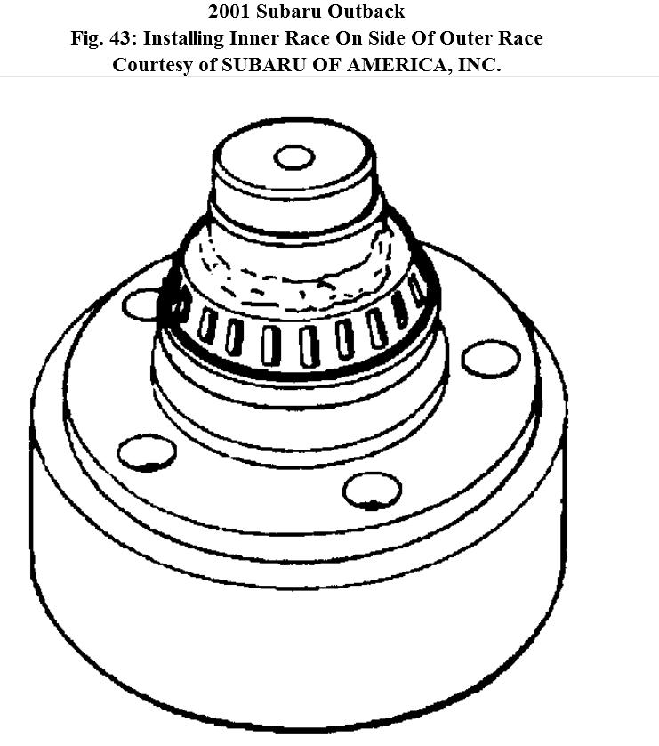 B) Be sure to install inner race on the side of outer race from which it was removed. See Fig. 43.