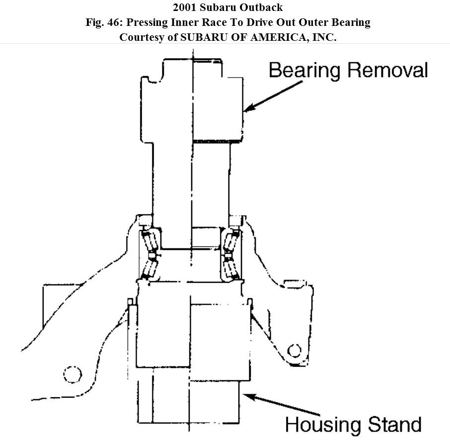 7. Using bearing remover, press inner race to drive out outer bearing. See Fig. 46.