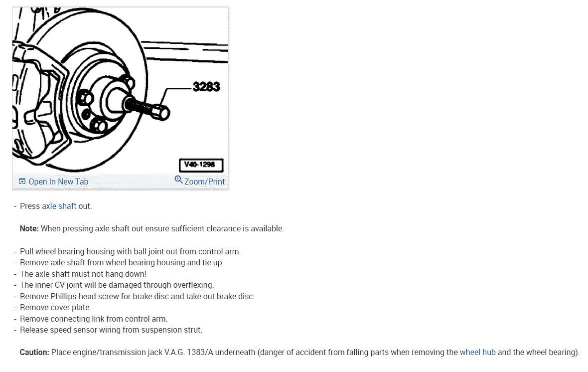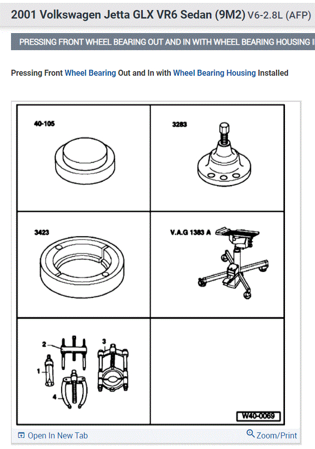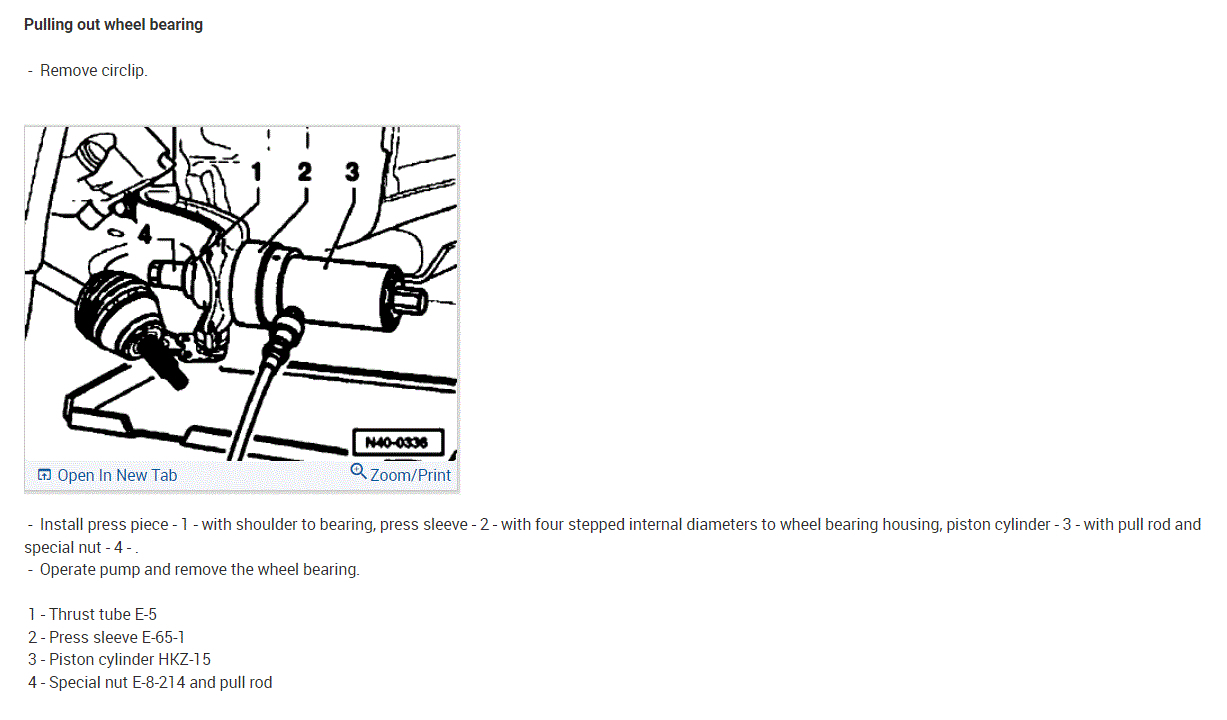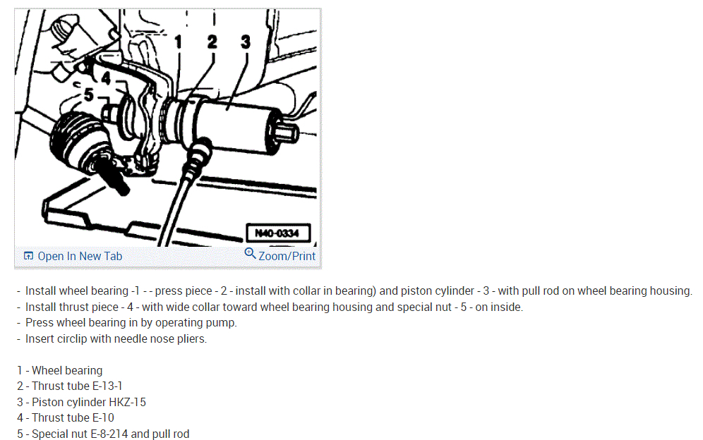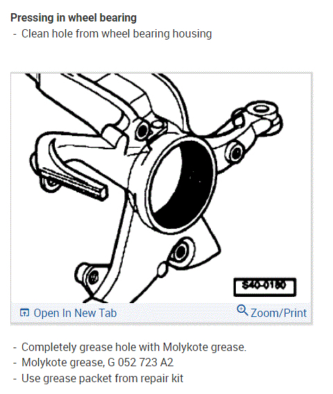 On this particular vehicle, the bearing will need to be pressed out and in the steering knuckle. It can be done while it is still on the vehicle. However, it requires special tooling. If you don't have access, then remove the steering knuckle and use a hydraulic press to perform the procedure.