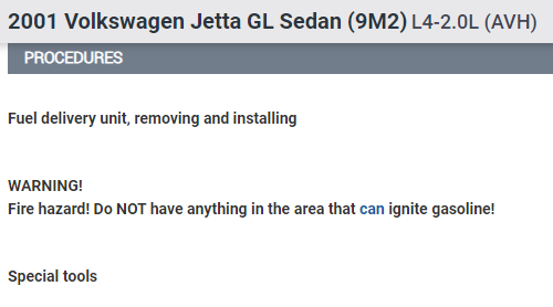 I've attached picture steps below on how to change the in-tank electric fuel pump on your Jetta. You will have to remove the seat cushion to gain access to the fuel pump via a metal access panel. Hope this helps and thanks for using 2CarPros.