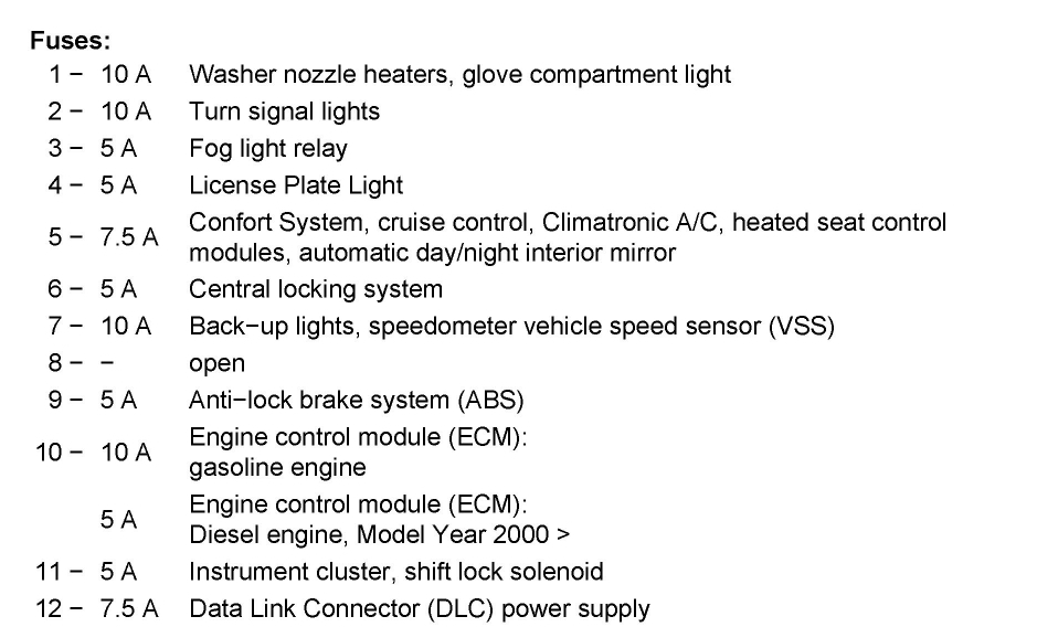 However it's good practice to test all your fuses on the driver side of the dash fuse panel. Here is a guide and the fuse location and identification below.