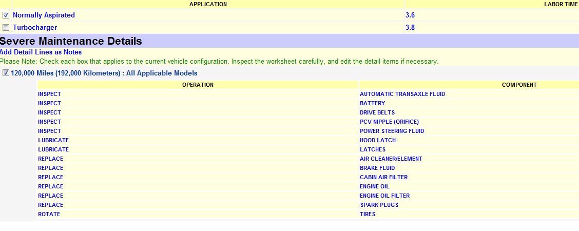 I am also providing you with the manufacturers' suggested Severe use 90,000 mile and 120,000 mile service.