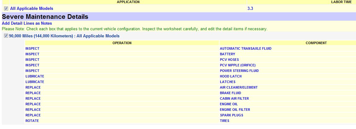 Please note at the top of each list is a, "Labor Hour" estimate. This is the time it should take a dealership or repair shop to performed the services listed.
