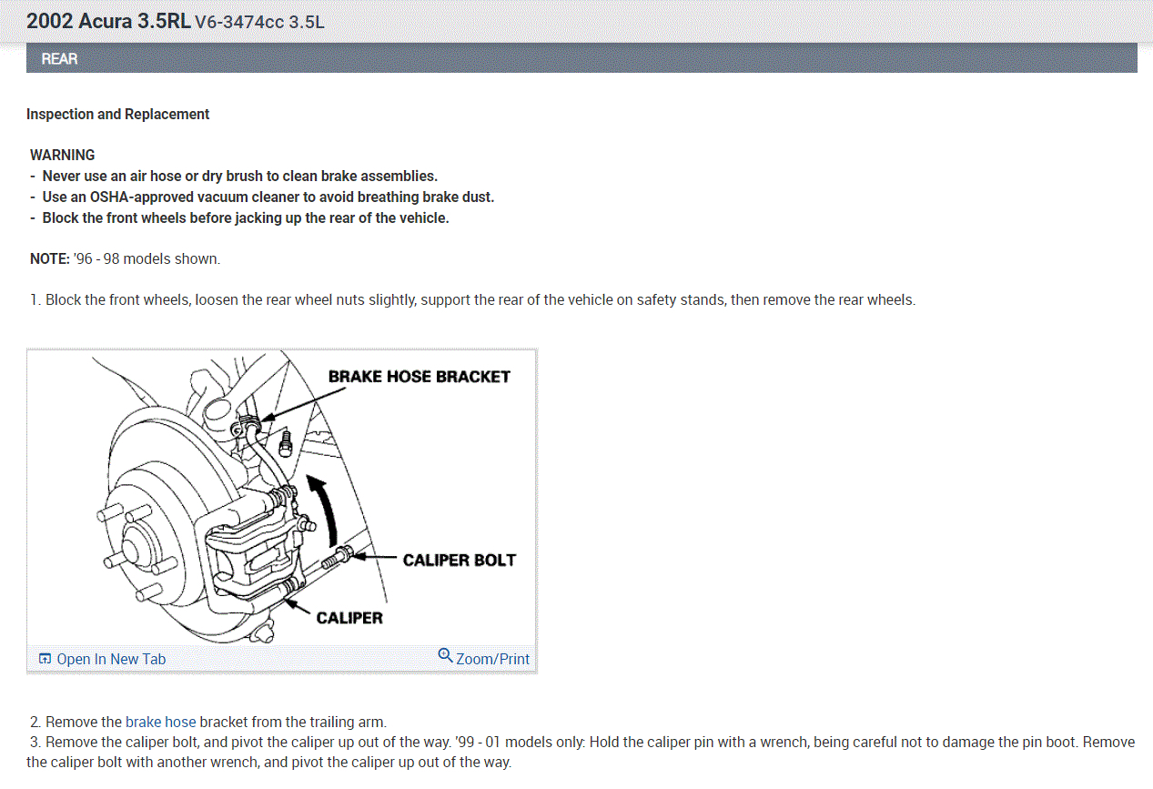 If you look at the attachments below, they provide the directions specific to your vehicle for rear brake pad and rotor replacement.