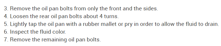 I believe I found the transmission oil pan, it looks in good condition with no leaking around the seal, but I can't find a drain plug on the bottom of it. I've looked online everywhere for answers to find out if it is indeed the transmission pan (looks like it's the transmission and it's just behind the oil pan). I need to know if I truly have to drop the entire pan to change it or if there is a bolt I'm not noticing to unscrew to drain. I don't really want to drop the entire pan as I'm sure it will get really messy. I just purchased the car 3 months ago and not sure how often if at all the oil has been changed. Since there is no leaking around the seal and from what I can tell the filter is metal so probably isn't a necessity to change out, just flushed really well. Please help if possible with as much info as you can provide. Maybe even a diagram or site that may provide such.