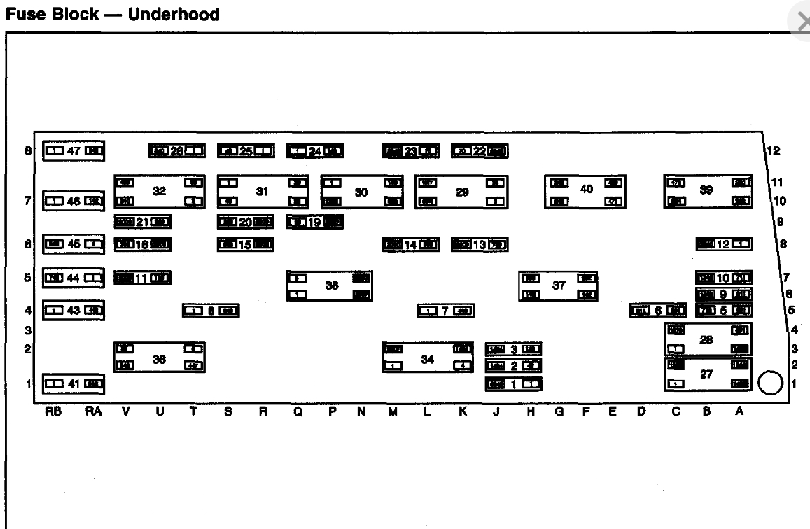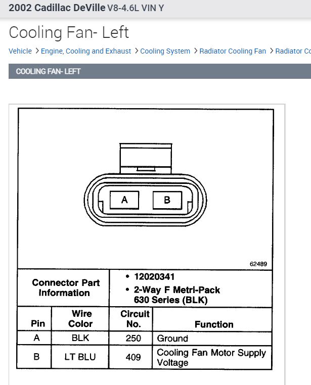 First check the relay. This vehicle has 3 relays for the cooling fans. They are located in the fuse box under the hood. I have attached the diagrams below.