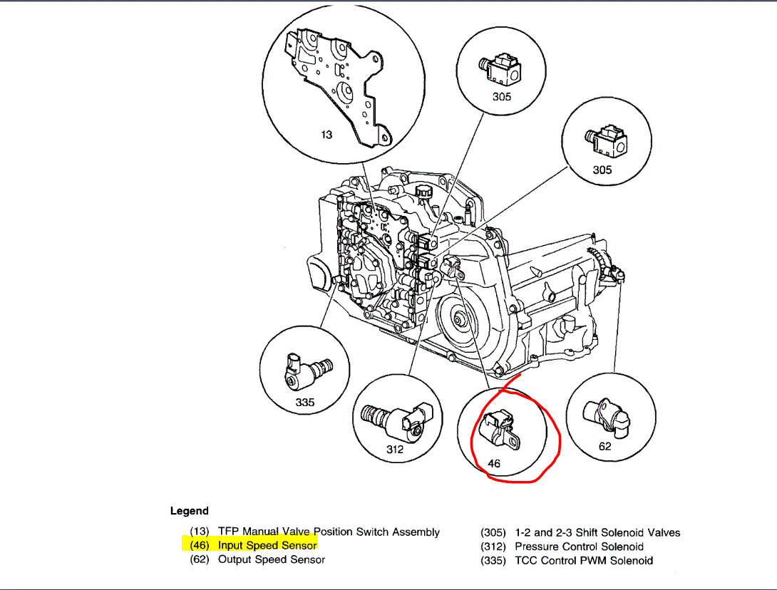 Vehicle Transmission and Drivetrain Automatic Transmission/Transaxle Service and Repair Overhaul 4T40-E/4T45-E Automatic Transaxle Repair Instructions 22. Input Speed Sensor Removal